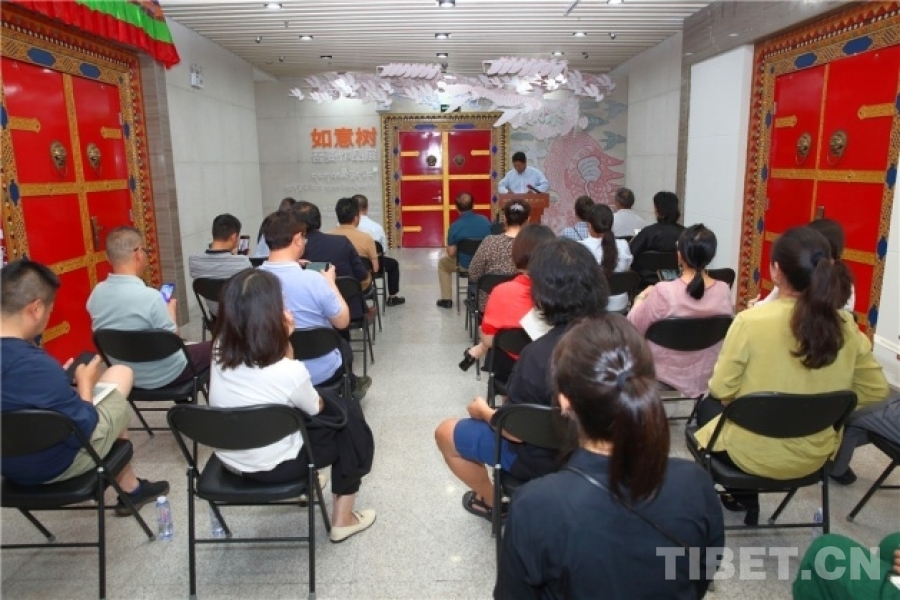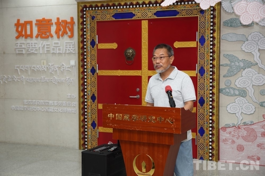 中國西藏網訊 7月5日,由北京市民族宗教事務委員會指導、中國藏學研究中心西藏文化博物館主辦的“如意樹——吾要作品展”在京開幕。中國藏學研究中心有關負責人和專家學者、北京市民族宗教事務委員會有關負責人、書籍設計師吾要及北京藝術界人士等60余人出席開幕式。