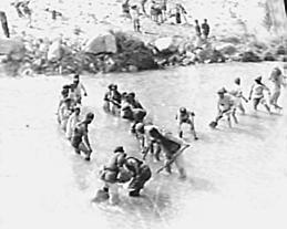 圖為1954年,筑路大軍修過楚瑪爾河的場面