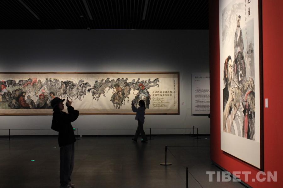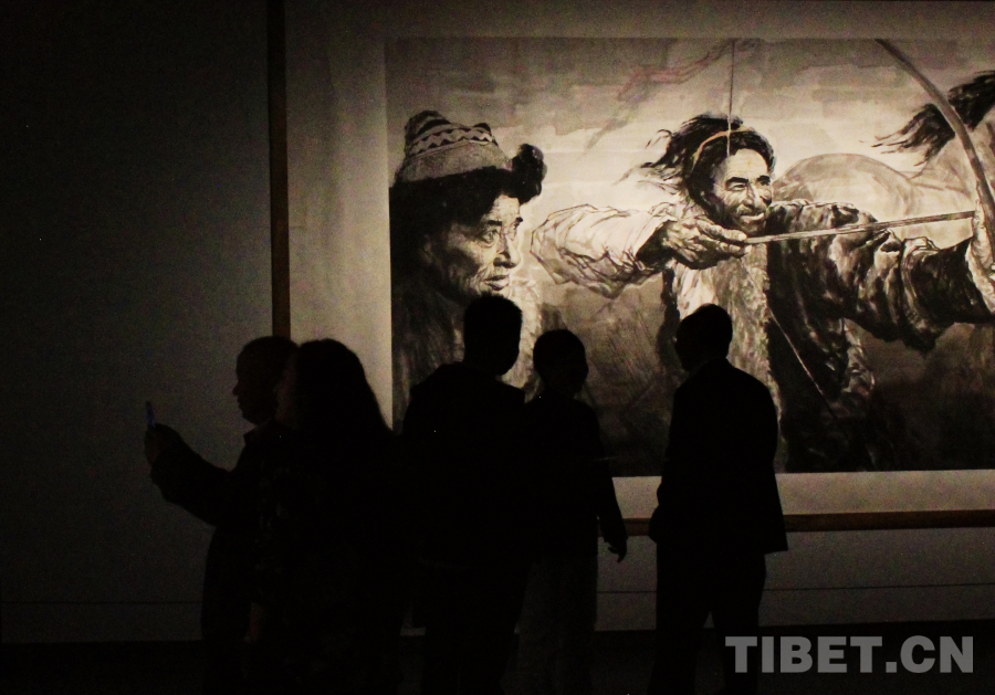 段勝前表示,此次展出梁平波先生的28幅西藏主題系列國(guó)畫作品,對(duì)人物的描繪惟妙惟肖、栩栩如生,作品大氣磅礴、令人震憾,極有感染力和穿透力,極具酥油味和糌粑香,生動(dòng)再現(xiàn)了今日西藏各族人民樂(lè)觀向上的精神風(fēng)貌,真實(shí)還原了西藏人民生生不息頑強(qiáng)奮斗的精神力量,誠(chéng)摯表達(dá)了對(duì)西藏這片藍(lán)天凈土的深厚情感,深深寄托了我們對(duì)偉大祖國(guó)的美好祝愿。希望以此次展覽為契機(jī),吸引更多的藝術(shù)家走進(jìn)西藏、了解西藏、宣傳西藏,進(jìn)一步促進(jìn)兩地文藝廣泛交往全面交流深度交融。