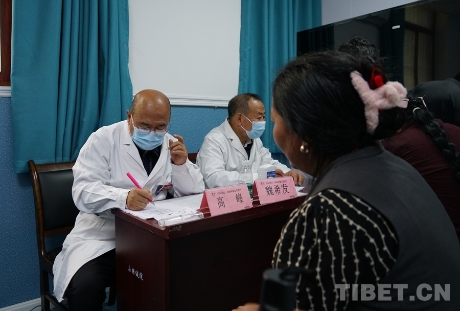 啟動儀式后,醫(yī)療專家團一行來到白玉縣人民醫(yī)院開展義診活動。當日上午,陰雨連天,但醫(yī)療專家們的熱忱絲毫不減,用北京先進的醫(yī)療技術(shù)和深厚的人文關(guān)懷為當?shù)厝罕妿砹私】蹬c溫暖。