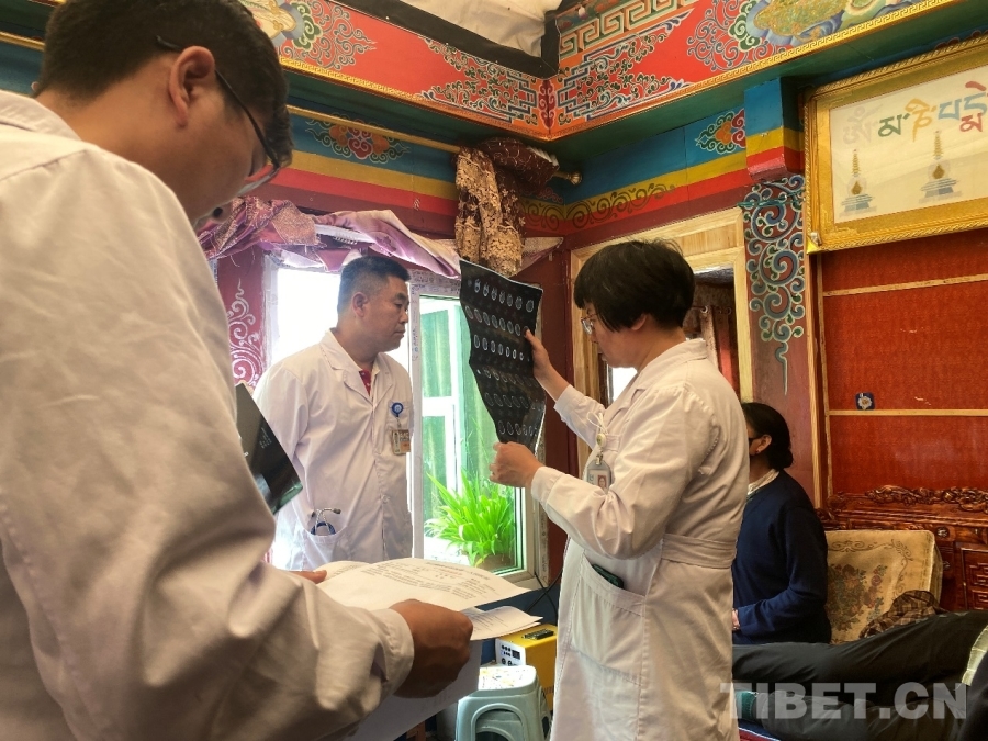 在仔細(xì)了解檢查患者的具體狀況后,四位專家對患者的現(xiàn)階段癥狀進(jìn)行了詳細(xì)分析,并分別提出了相應(yīng)的治療與康復(fù)計劃。在此過程中,鄉(xiāng)長在一旁將專家的意見和康復(fù)動作要領(lǐng)翻譯成藏語,以便家屬能夠準(zhǔn)確理解和掌握。