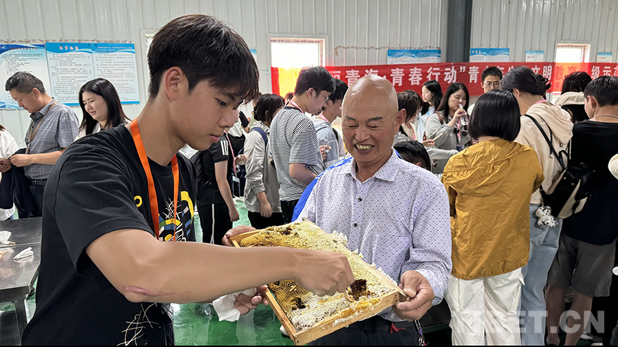 7月11日,140余名香港青少年帶著對(duì)知識(shí)的渴望來(lái)到海南州貴德縣,踏上了生態(tài)研學(xué)之旅。在青藏華峰中蜂蜂業(yè)有限公司保種場(chǎng)(以下簡(jiǎn)稱(chēng)保種場(chǎng)),群山環(huán)抱,樹(shù)木蔥蘢的山坡里分布著許多蜂箱,同學(xué)們?cè)邳S河岸邊與中華蜜蜂來(lái)了場(chǎng)親密邂逅。