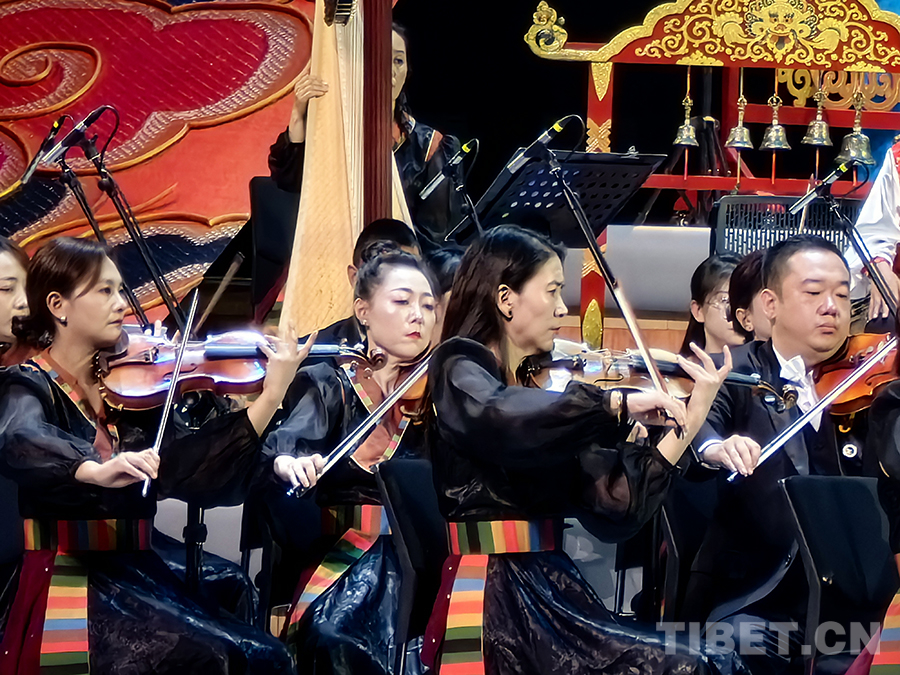 開幕式總導(dǎo)演白瑪次仁介紹,這次藝術(shù)節(jié)開幕式打破了以往以歌舞為主的演出形式,以音樂會(huì)的形式拉開了藝術(shù)節(jié)的大幕。同時(shí),舞臺(tái)設(shè)計(jì)采用卷軸畫的形式,所有的演奏人員都是畫中的一部分。他說,希望這臺(tái)精彩的民族管弦樂《喜瑪拉雅》走出西藏在國內(nèi)進(jìn)行巡演,更希望能走出國門去向世界展示中華文化風(fēng)采。