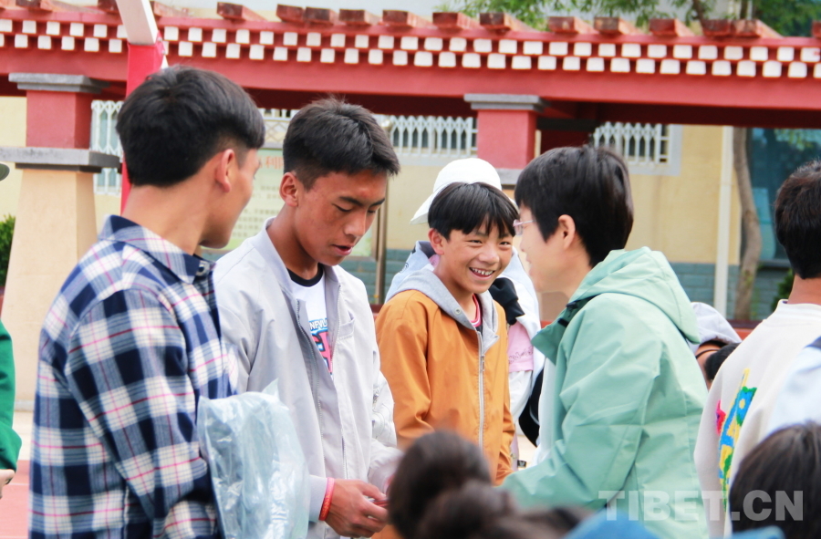圖為中國中醫(yī)科學院西苑醫(yī)院婦科醫(yī)生杜小果為甘孜州康北兒童福利院的孩子們送上慰問品 攝影:劉莉