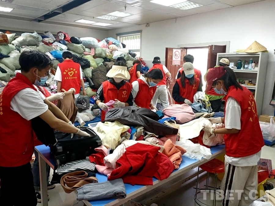 圖為古如次仁參加衣物分揀志愿服務(wù)活動