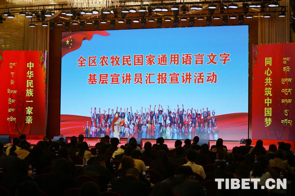 中國西藏網(wǎng)訊 “語言不僅僅是一種交流工具,它還承載著情感、態(tài)度和價值觀。即使在那曲,每個地區(qū)的方言都有很大的差別,正是因為國家通用語言文字的使用,讓大家方便了溝通,增進了相互了解?!?月28日,西藏全區(qū)農牧民國家通用語言文字基層宣講員匯報宣講活動在拉薩市開展,來自那曲市巴青縣瑪如鄉(xiāng)曲古村的農牧民宣講員達拉才措正在舞臺上向大家分享著她在基層宣講的經(jīng)歷。