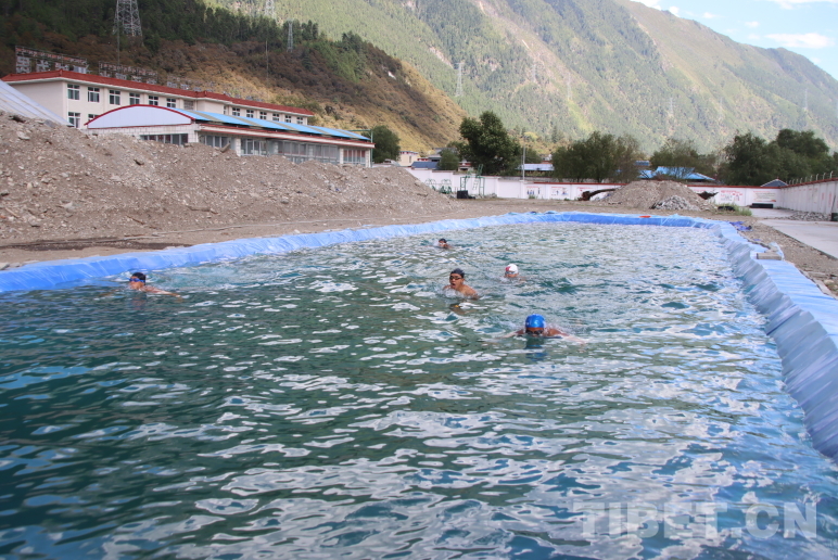 圖為波密縣森林消防中隊(duì)指戰(zhàn)員利用自建簡(jiǎn)易泳池開(kāi)展游泳訓(xùn)練