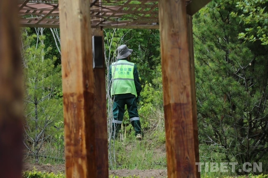 圖為工人在對(duì)南山公園的植被進(jìn)行養(yǎng)護(hù) 攝影:王佳豪