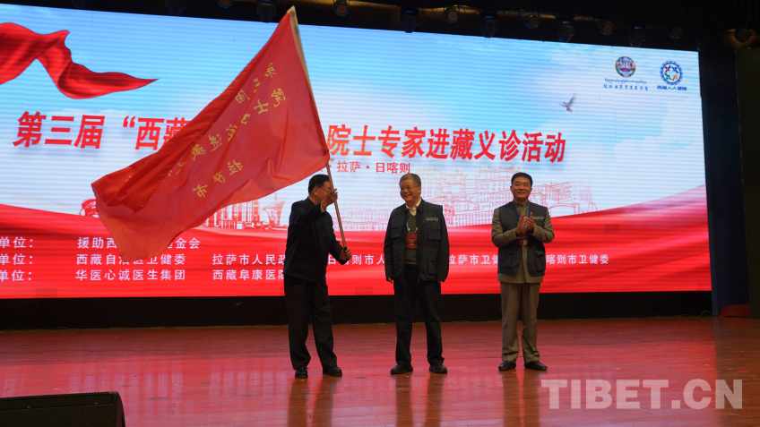 圖為第三屆“西藏人人健康”院士專家進(jìn)藏義診活動(dòng)啟動(dòng)儀式授旗現(xiàn)場(chǎng) 攝影:王淑