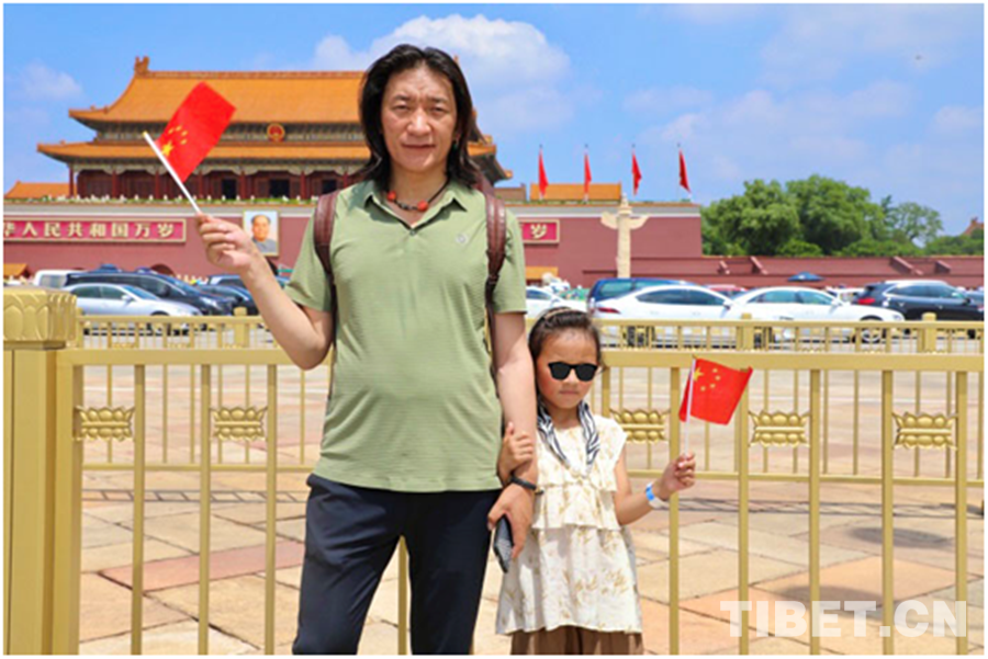 圖為澤多和澤丹父女倆在天安門前合影 攝影:龍真多吉