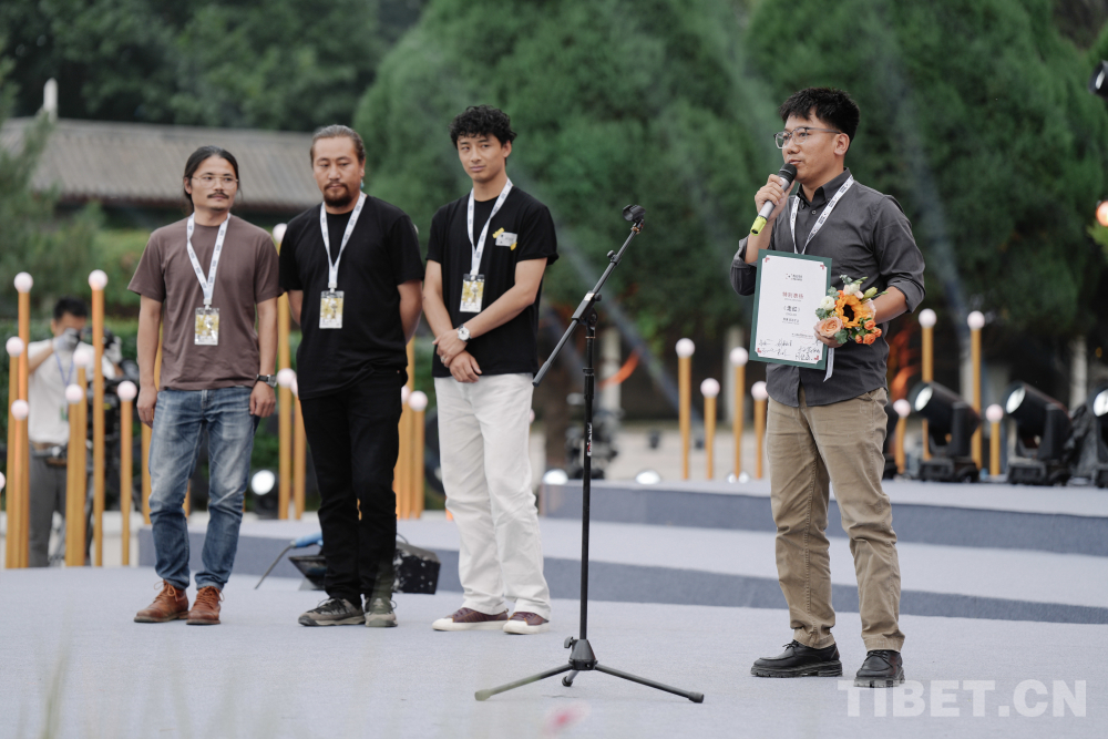 圖為旦正才讓導(dǎo)演發(fā)表感言