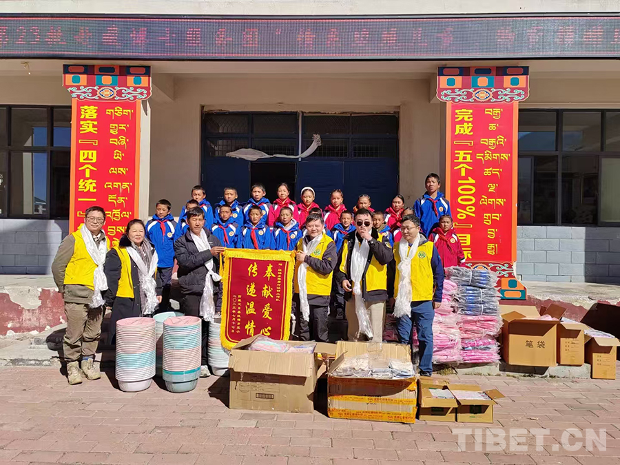 2023年11月,作為北京市新聯(lián)會(huì)理事、石景山區(qū)新聯(lián)會(huì)會(huì)長、朵云文化藝術(shù)服務(wù)中心主任,我第二次到西藏,隨公益組織雙閃車隊(duì)、援藏博士服務(wù)團(tuán)一起到日喀則市定日縣絨轄鄉(xiāng)完小,為這所邊境小學(xué)捐贈(zèng)了價(jià)值1000元的文具。