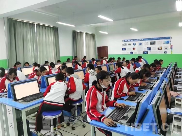 圖為西藏日喀則市上海實驗中學學生們在上信息技術課 攝影:王淑