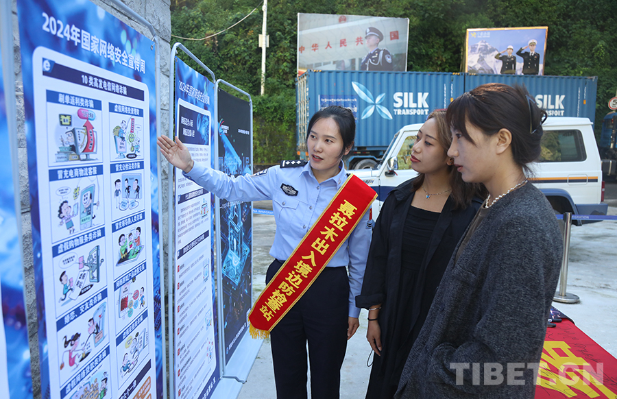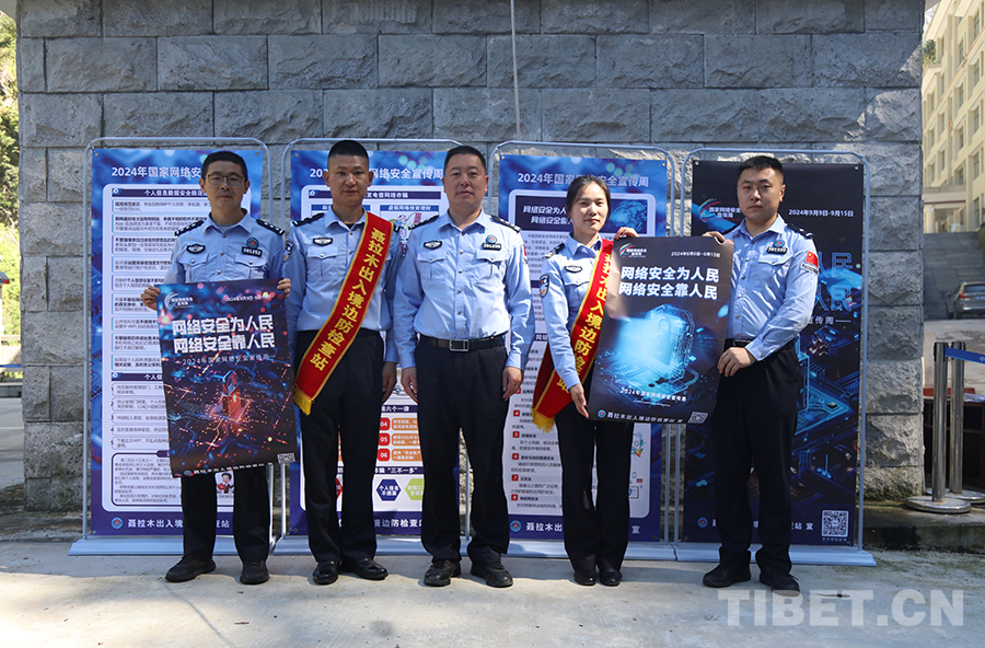 圖為聶拉木出入境邊防檢查站移民管理警察開展網(wǎng)絡(luò)安全周集中宣傳活動 攝影:高榮元