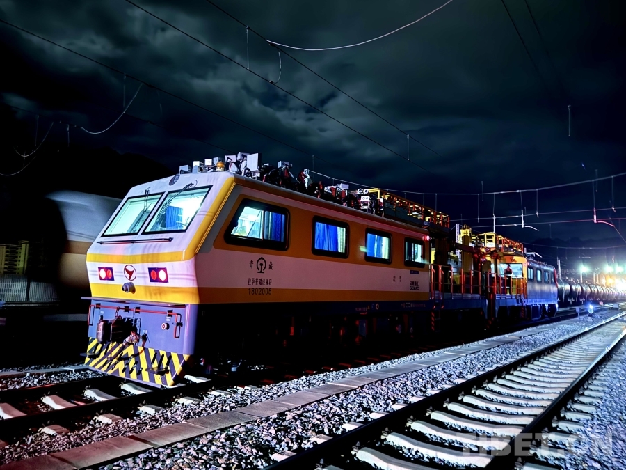 中國西藏網(wǎng)訊 9月17日22時40分,隨著夜幕降臨,一輪皎潔的中秋明月悄然升起,撒下銀輝覆蓋了廣袤的青藏高原。在青藏鐵路堆龍曲大橋上,一組黃色接觸網(wǎng)作業(yè)車緩緩移動,明亮的車燈刺破黑夜。車內(nèi)13名觸網(wǎng)工正在互相系綁安全帶,為即將開始的接觸網(wǎng)秋檢作業(yè)忙碌著。