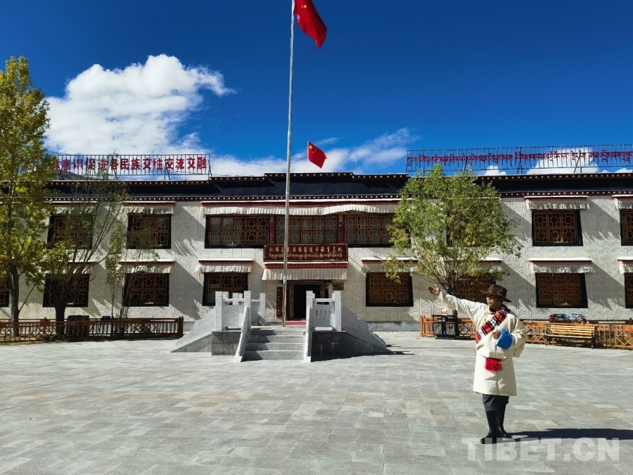 圖為拉巴次仁介紹位于普納村的仁布縣民族團結(jié)進步教育基地 攝影:蔣馨悅