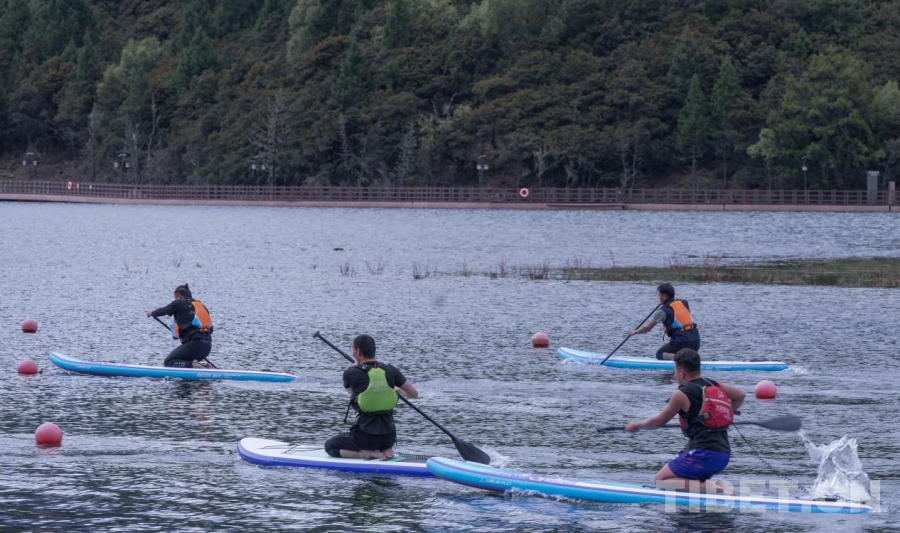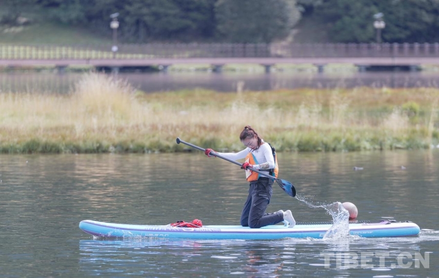 中國西藏網(wǎng)訊 9月26日,2024年“綠水青山”中國休閑運動挑戰(zhàn)賽(西藏林芝站)在西藏林芝魯朗國際旅游小鎮(zhèn)開賽。來自全國各地的百余名體育健兒及愛好者相聚在扎塘魯錯湖畔,共同在藍天白云下、綠水青山間揮槳競逐。