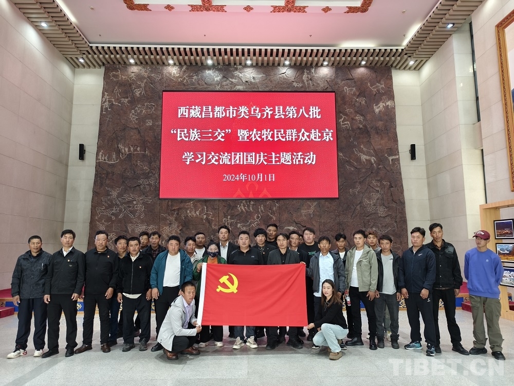 中國西藏網(wǎng)訊 金秋的北京城,洋溢著節(jié)日的喜慶與祥和。10月1日上午,西藏自治區(qū)昌都市類烏齊縣的第八批“民族三交”暨農(nóng)牧民群眾赴京學(xué)習(xí)交流團來到中國藏學(xué)研究中心西藏文化博物館進行參觀考察。