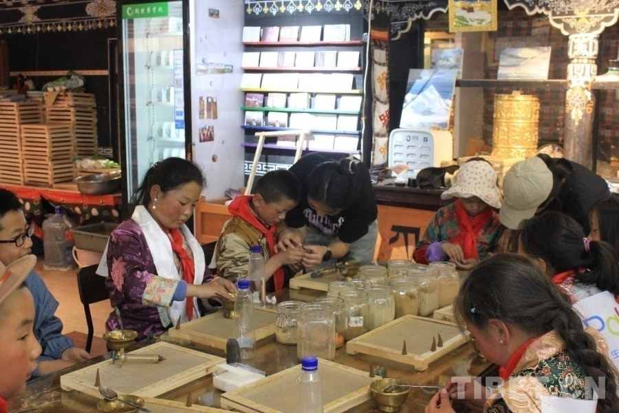 圖為研學游學生在工作人員的指導下制作藏香 攝影:蔣馨悅