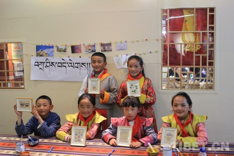 圖為研學游學生與自繪的唐卡作品合影 攝影:蔣馨悅