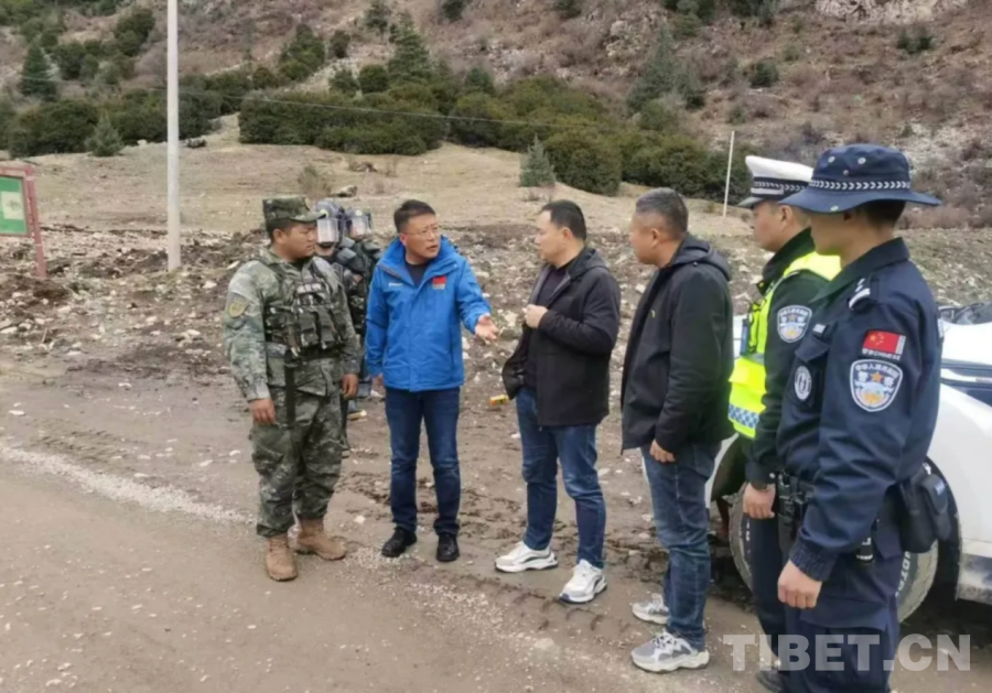 圖為馬奇華(藍色衣服者)在工作中 供圖:嘉黎縣應(yīng)急管理局