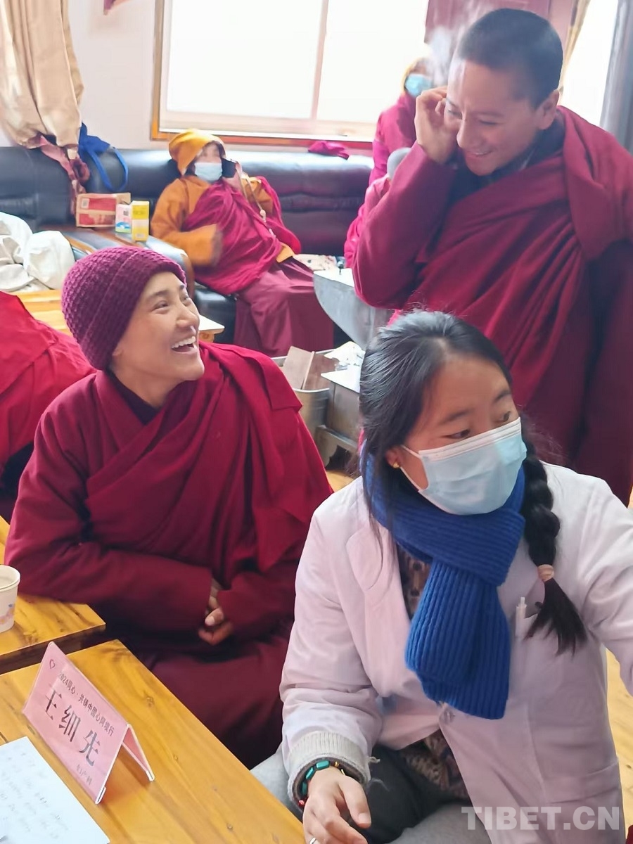 中國(guó)西藏網(wǎng)訊 10月26日,同心·共鑄中國(guó)心公益活動(dòng)義診專(zhuān)家組選派三名女專(zhuān)家走進(jìn)四川省阿壩藏族羌族自治州紅原縣瓦切鎮(zhèn)如意空行寺,為覺(jué)姆義診并開(kāi)展健康科普講座。
