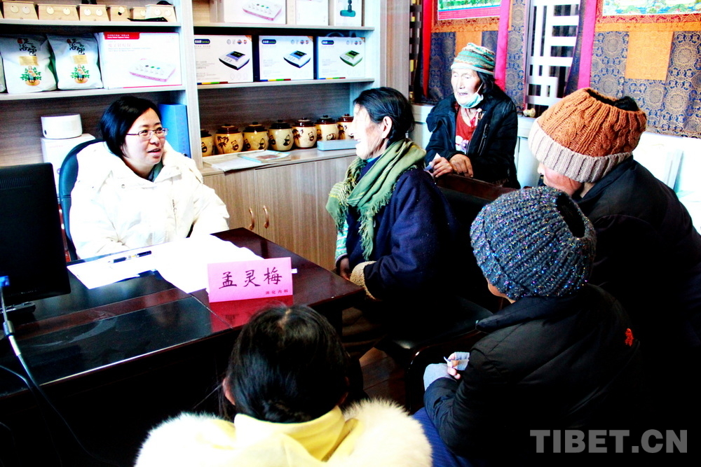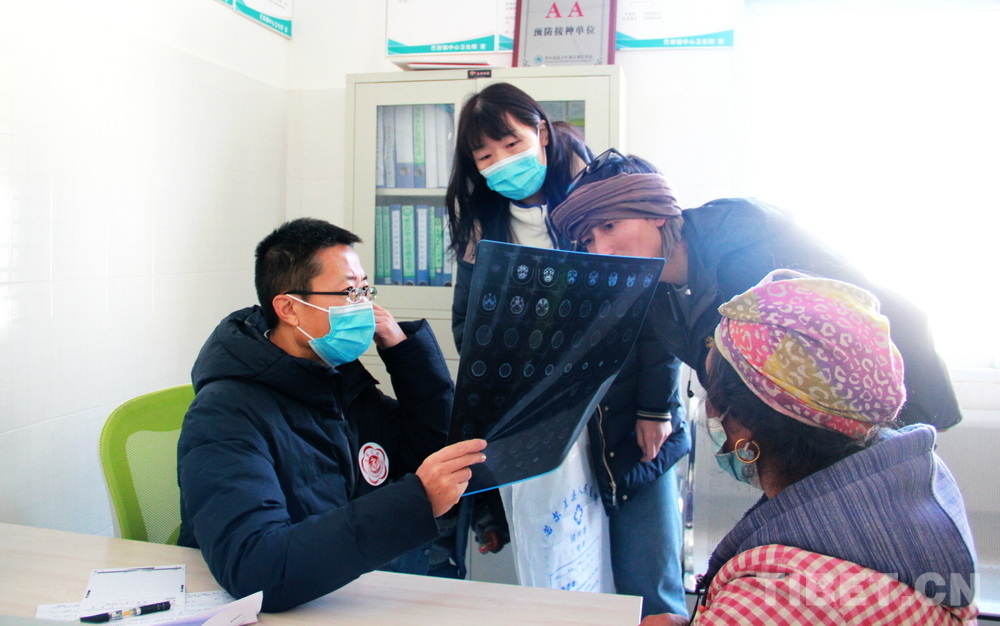 圖為北京大學(xué)第三醫(yī)院介入血管外科主治醫(yī)師楊廣鑫(右二)幫助若爾蓋縣巴西鎮(zhèn)中心衛(wèi)生院醫(yī)務(wù)人員分診 攝影:劉莉
