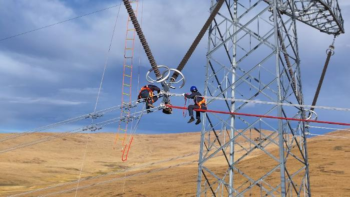 圖為國網(wǎng)西藏電力工作人員開展巡視巡檢工作
