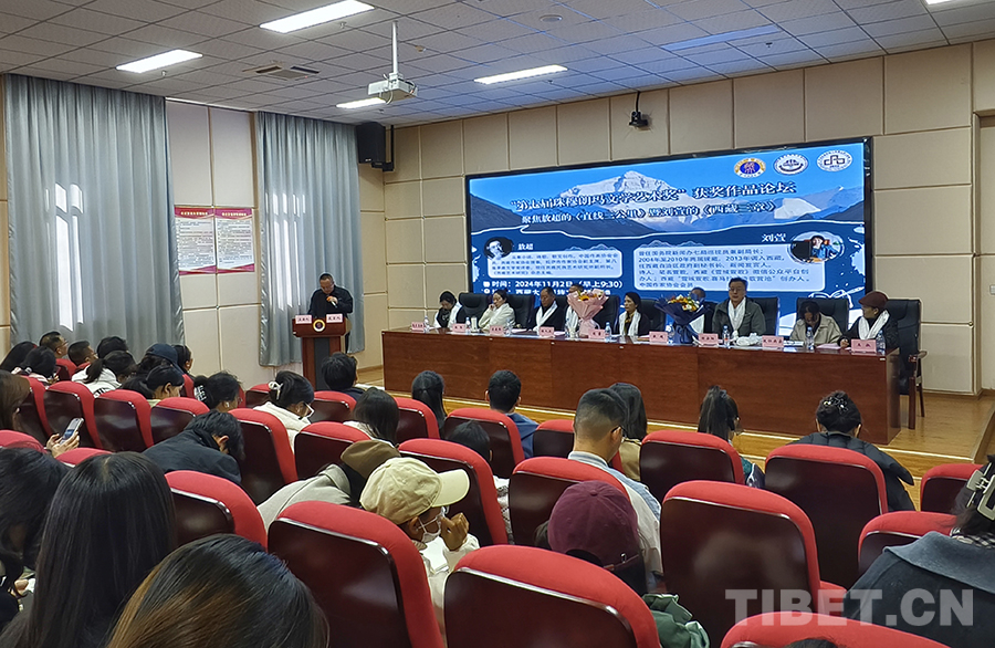 中國西藏網(wǎng)訊 11月2日,第七屆珠穆朗瑪文學藝術(shù)獎獲獎作品論壇在西藏大學舉辦。此次論壇由西藏大學文學院主辦,聚焦于敖超的長篇小說《直線三公里》與劉萱的詩集《西藏三章》。