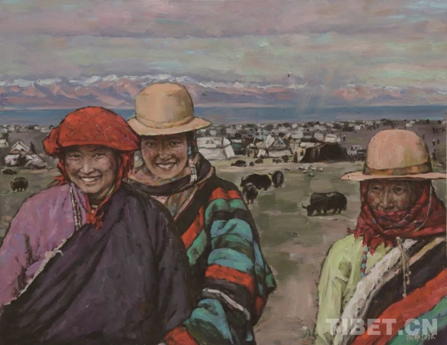 圖為“藍天白云——雪域高原油畫作品巡展”作品《桑嘎古多》(50x70cm 布面油畫)作者:扎西次仁