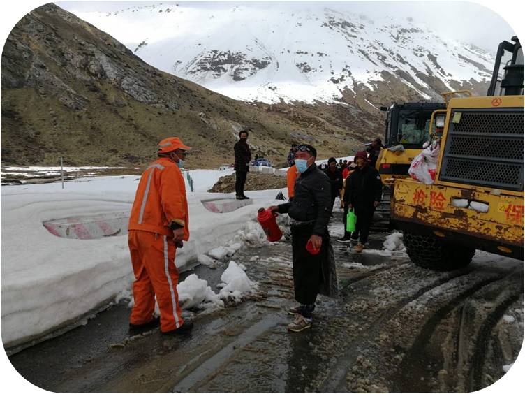 2018年,單位新接管波密縣境內(nèi)省道S303線。為打破“冬季封路禁行”的慣例,確保康玉鄉(xiāng)人民群眾通往波密縣城必經(jīng)之路的全年暢通,決定設(shè)立果扎拉山保通點(diǎn),全年全天開啟駐守保通模式。