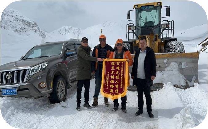 “能不能幫幫忙,讓我們過一輛車子就行,我老婆闌尾炎犯了,疼得要命,我想趕緊送她去縣醫(yī)院”。這是我們保通過程中另一個(gè)故事。2022年5月的一個(gè)夜晚,正當(dāng)我們完成果扎拉山頂?shù)谋Mㄈ蝿?wù),結(jié)束工作準(zhǔn)備返回保通點(diǎn)時(shí),一位村民攔住了我們的去路。當(dāng)時(shí)已是晚上8點(diǎn)多鐘,又趕上山頂突發(fā)約3500立方米的大型雪崩,連軸轉(zhuǎn)一天的機(jī)械,油也用得差不多了。聽到村民說車?yán)镉胁∪?,我與其他同事顧不上吃晚飯,更顧不上休息,商量一致后,決定一起連夜推通雪崩。當(dāng)時(shí)已是深夜,室外零下6、7度,能見度不足5米,即便是開著車燈,在一大片白茫茫的雪地里,也依然看不太清楚前面的道路。推到一半,車子突然沒油了,其他保通人員趕忙翻過雪崩,去另外一臺(tái)機(jī)械里倒油出來(lái)。然后再翻過雪崩,添上柴油繼續(xù)推雪。當(dāng)最后一鏟雪被推完,已是凌晨?jī)牲c(diǎn)多。為確保車?yán)锊∪税踩律?,得到及時(shí)救治,我在前面開路,一直將其送至山腳下,才放心返回保通點(diǎn)就餐休息。