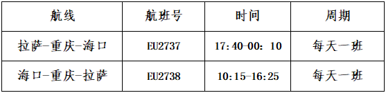 圖為拉薩?重慶?海口航線時間表,具體以航班飛行實際時間為準