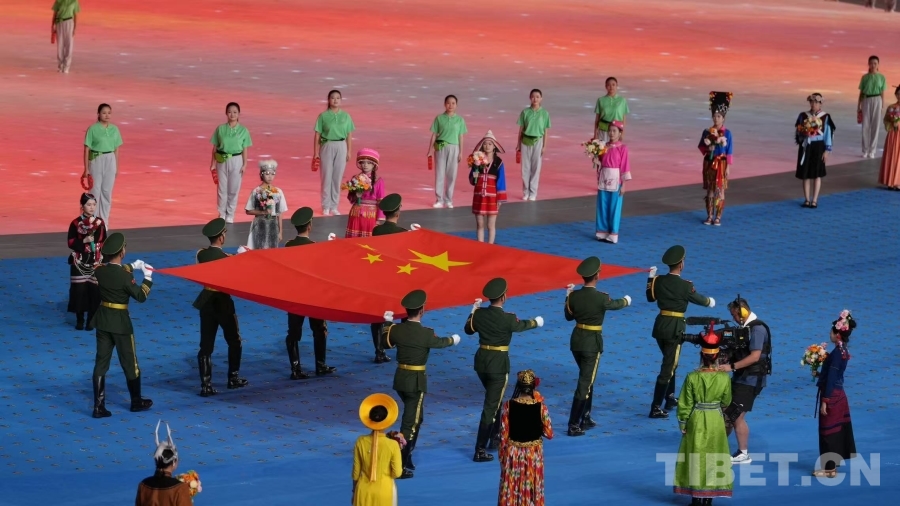 圖為中華人民共和國國旗在開幕式上入場(chǎng) 攝影:德吉卓瑪