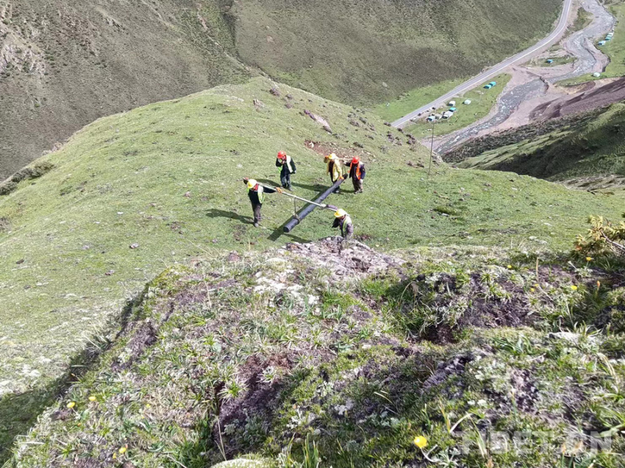 圖為工作人員正在雪域高原架設(shè)通信鐵塔。 圖片由西藏自治區(qū)通信管理局提供