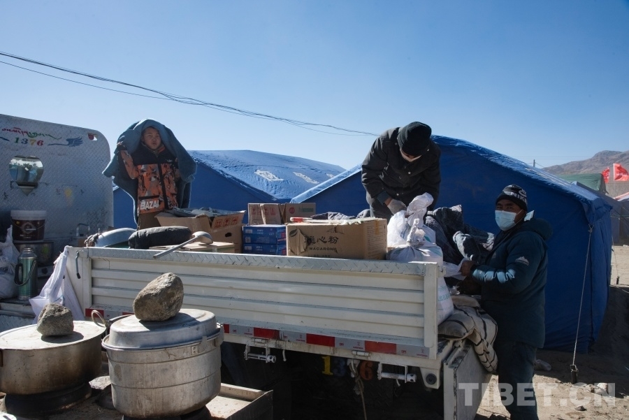 圖為森嘎村受災安置點群眾正在盤點家中物資 攝影:趙振宇