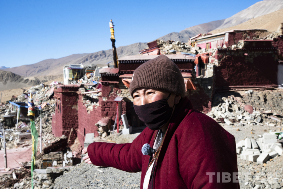 “我們的寺廟受損非常嚴重,感覺像是整座建筑都坍塌了下來,當時被壓在下面非常害怕,還好只是受到了輕微的傷害。”位于半山腰上的宗布寺是一座有600多年歷史的尼姑寺,旦增曲宗至今回憶起當時地震時的場景仍然感到害怕。