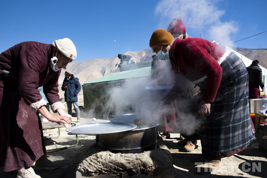 “輕傷的僧尼在我們縣醫(yī)院就診,重傷的僧尼我們第一時間就已轉運至日喀則市人民醫(yī)院,其余的僧尼我們于地震當日就已搭建好帳篷統(tǒng)一在森嘎曲德寺旁的空地進行安置?!痹谑転纳岚仓命c,一間間活動板房整齊排列,僧尼們正在點柴燒水、切大白菜,為今日午餐做準備。