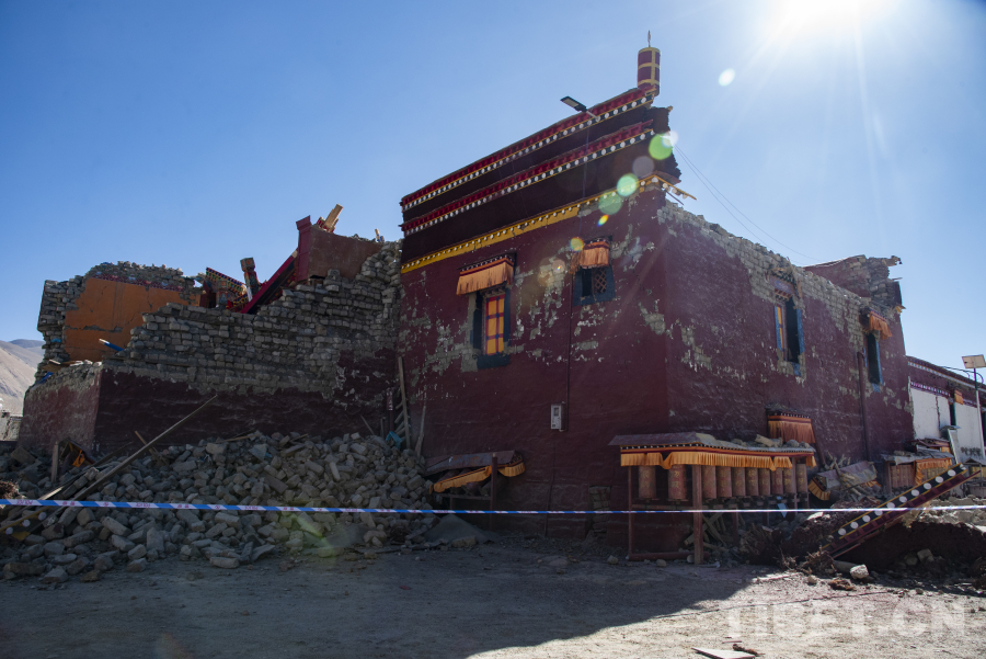 “當時往宗布寺趕的救援人員有30余人,由于地震造成道路損壞,我們只能以徒步的方式加速前往。宗布寺海拔有4400米,平時我們從森嘎曲德寺開車過去也需要20分鐘,我們一路用最快的速度大概走了1個多小時?!倍ㄈ湛h委統(tǒng)戰(zhàn)部工作人員講,前往搜救時他們面臨余震不斷、道路損壞、通信中斷、房屋坍塌等重重困難,但仍以最快的速度趕往宗布寺,先以徒手刨土的救援的方式進行搜救,成功救出數(shù)名被困尼姑,直到專業(yè)救援力量的到來。