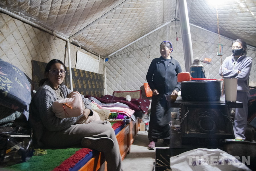 “地震是9點多鐘發(fā)生的,12點鐘我們就已經(jīng)搭建好了帳篷讓次央家住了進去,可以說她是全村第一個住進帳篷的人。考慮到孩子剛剛出生,我們緊急調運來火爐,讓次央家中第一個升起爐火取暖?!边_娃白珍說地震發(fā)生后,村兩委及駐村工作隊干部第一時間趕往平時關照的特殊群眾家中,優(yōu)先幫助他們解決地震后遇到的困難。