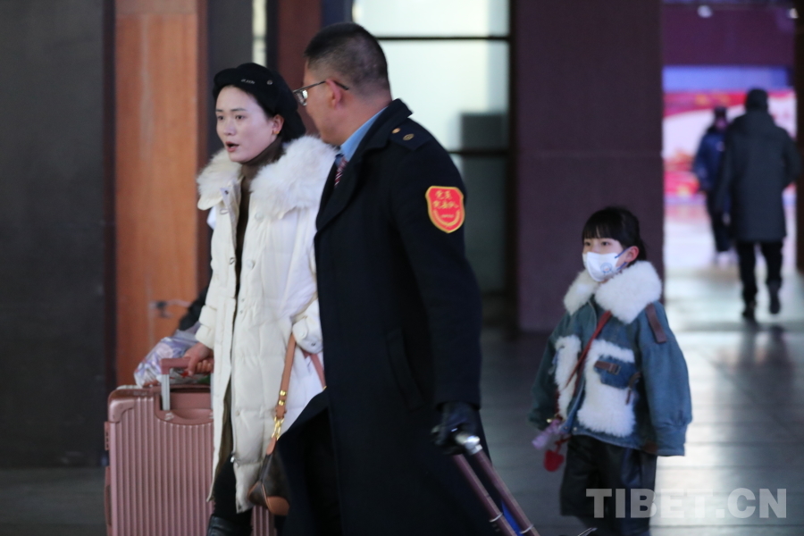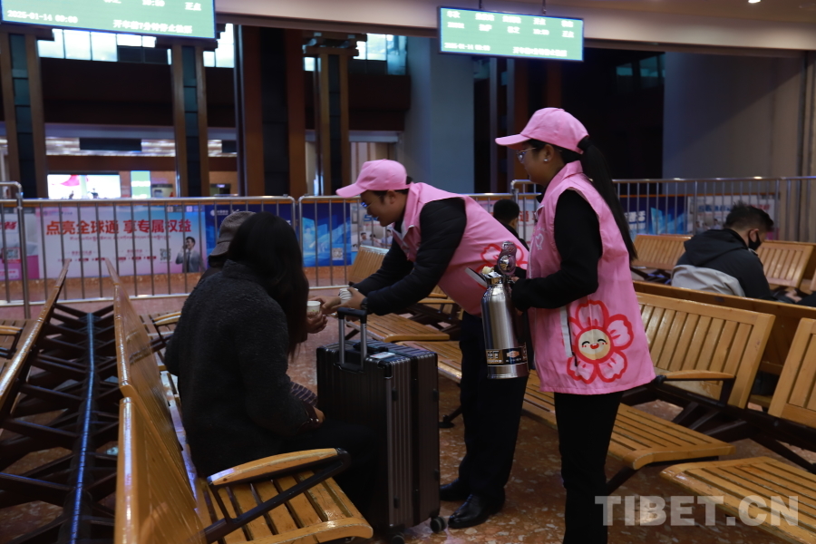 圖為拉薩車站春運首日志愿者為候車旅客服務