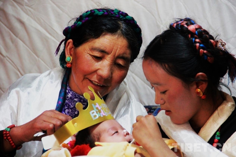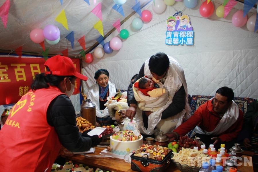 圖為在西藏自治區(qū)日喀則市定結(jié)縣江嘎鎮(zhèn)榮貢村舉辦的“情暖震后帳篷,共賀雙寶百日”活動(dòng) 攝影:劉莉