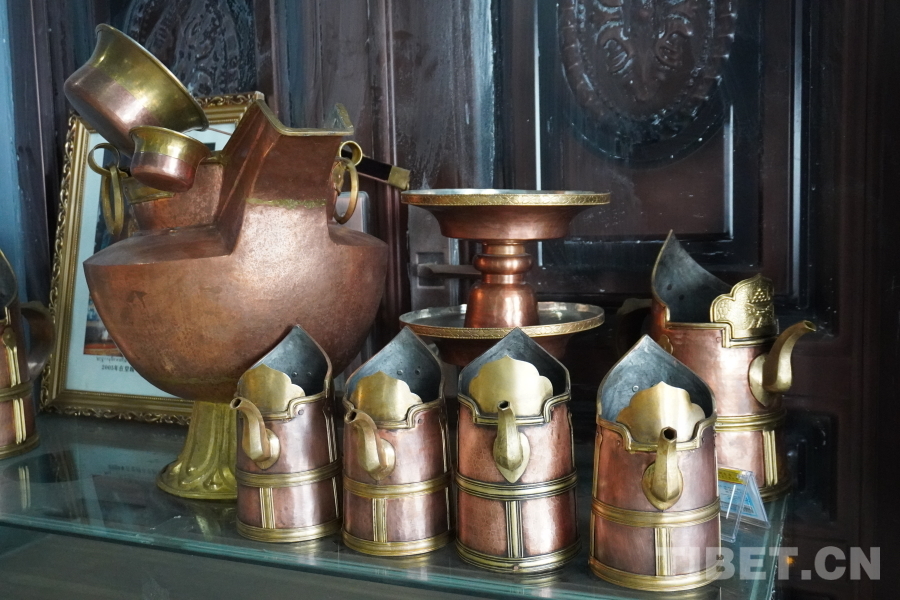 此外,孜東銅器歷代傳承人積極參與文物修復(fù)工作,以匠心之手,撫觸歷史的痕跡。2012年起,列旦桑布和工人們一起參與了西藏自治區(qū)博物館、羅布林卡,以及薩迦寺等單位及寺院的銅器文物維修工作。讓沉睡的千余件銅器文物在時光中蘇醒,重現(xiàn)了西藏輝煌滄桑的歷史歲月,用愛與責(zé)任守護著中華民族的寶貴遺產(chǎn)。