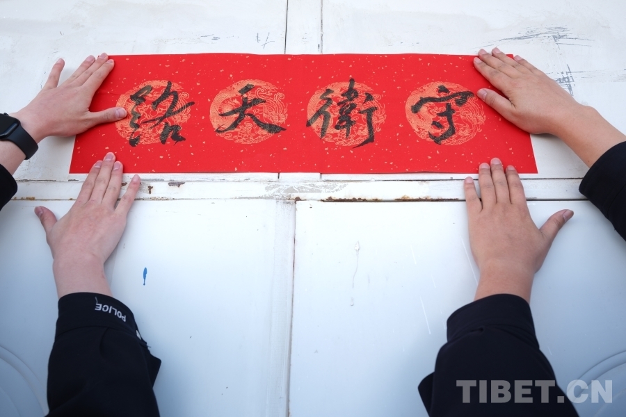 圖為駐站民警在新春來臨之際,用心寫下最美好的愿望“守衛(wèi)天路”,用行動保衛(wèi)鐵路運輸安全。攝影:賀瑞明