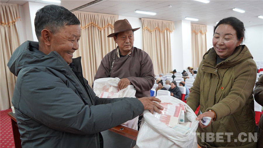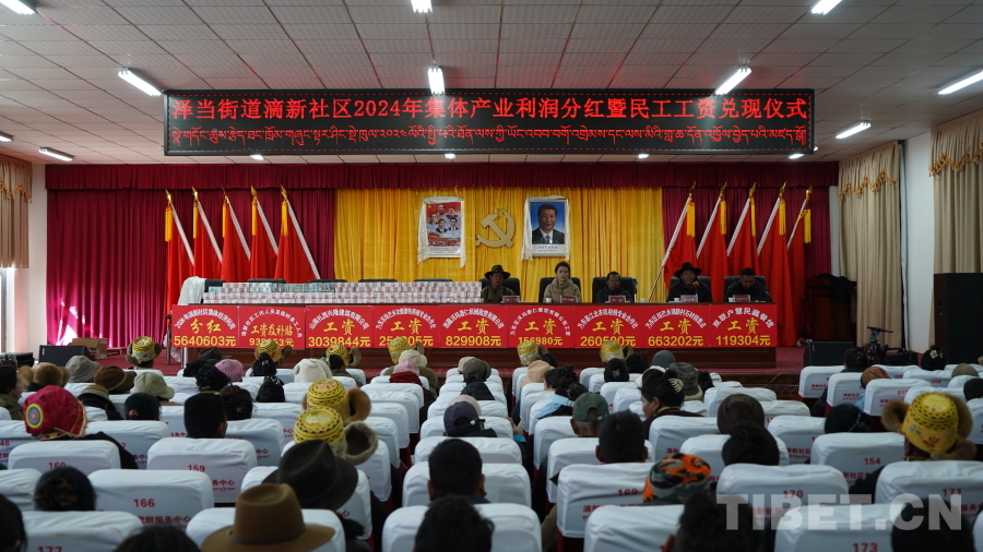 圖為西藏自治區(qū)山南市澤當(dāng)街道滴新社區(qū)2024年集體產(chǎn)業(yè)利潤分紅暨民工工資兌現(xiàn)儀式現(xiàn)場(chǎng)