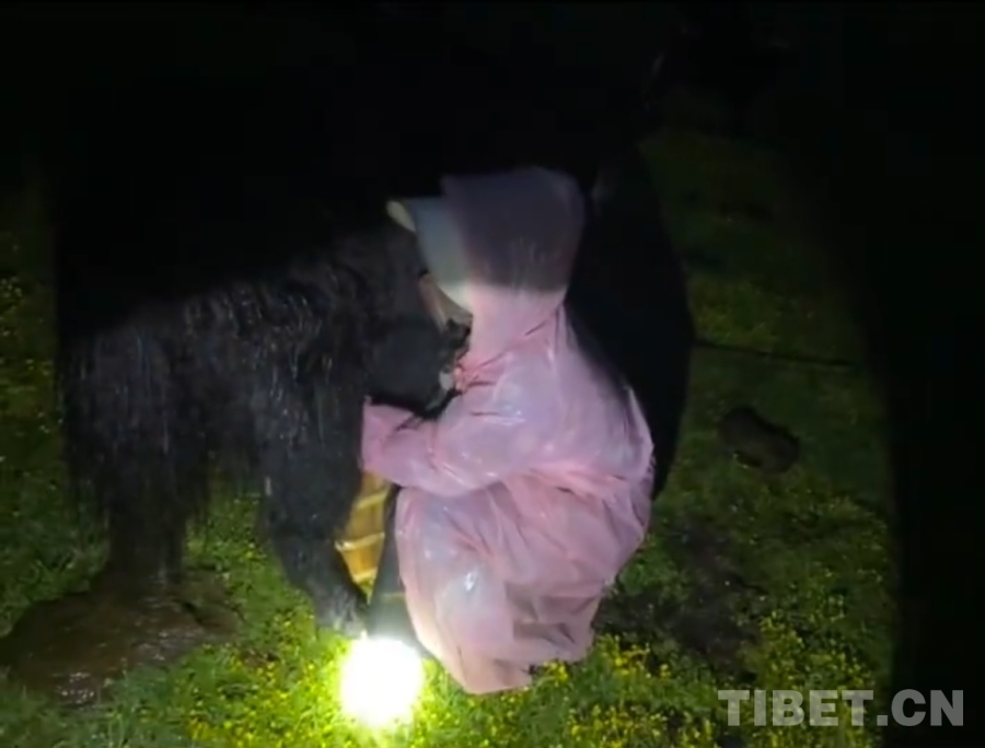 到了牛圈里,我發(fā)現(xiàn)大部分的牦牛都把腦袋斜靠在自己的肚子旁,閉著眼睛睡覺呢。我想很多人都沒見過牦牛睡覺的畫面吧?它們睡覺不是站著,而是躺下后前后腿全部收緊,把自己裹成一團(tuán),頭不是往前伸著,而是斜著貼緊自己的身體。過了一會兒,似乎是小牛犢們意識到了自己馬上就可以喝到媽媽的奶了,牛圈里開始傳來此起彼伏的叫聲;另一邊的牛媽媽們也開始作出回應(yīng)。雖然在我聽來都是同一種叫聲,但在它們那兒似乎有著完全不一樣的意義。這是屬于它們自己的“加密語”。就這樣,在一聲聲“哞——哞——”的叫聲中,我們開始了今天的工作。