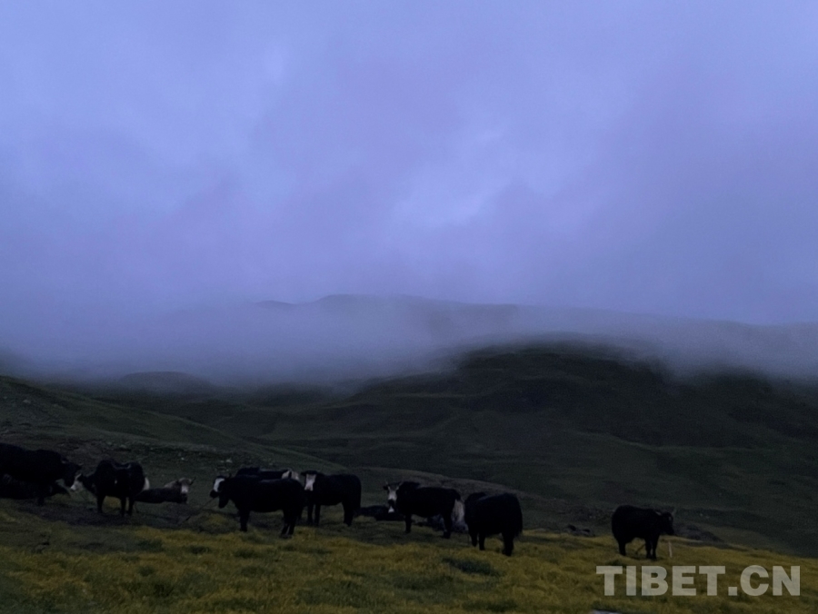 過了一會兒,天邊漸漸卷起了一個白邊,然后越來越大。后來,遠(yuǎn)處的山、河、帳篷、牛羊都逐漸清晰了。這時,我們的工作也接近尾聲。一回頭,看到我家?guī)づ耥數(shù)臒焽枥锷鹆搜U裊炊煙,我知道,爸爸已經(jīng)準(zhǔn)備好了早餐,等著我們回家了。(中國西藏網(wǎng) 實(shí)習(xí)生/扎西央措)