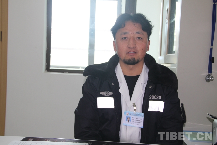 中國西藏網(wǎng)訊 雪白的大褂外披一件藏藍色冬裝便衣,這便是瑪曲縣阿萬倉中心衛(wèi)生院的執(zhí)業(yè)醫(yī)師楊長才旦。他的胸牌上寫著“科室:洛隆村衛(wèi)生室”,表明他是鎮(zhèn)上五個大隊其中之一的村醫(yī),集中在中心衛(wèi)生院輪班為病患看診。