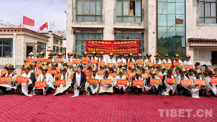 圖為定結(jié)縣定結(jié)鄉(xiāng)雜興村集體經(jīng)濟(jì)收入分紅儀式現(xiàn)場