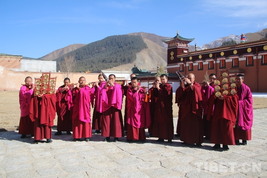 拉卜楞寺被譽(yù)為“世界藏學(xué)府”,位于甘肅省甘南藏族自治州夏河縣。道得爾是拉卜楞寺唯一的佛殿音樂,2008年被列入國(guó)家級(jí)非物質(zhì)文化遺產(chǎn)名錄。拉卜楞寺道得爾佛樂團(tuán),由二世嘉木樣·久美旺吾創(chuàng)立,至今已有近300年歷史,期間不斷發(fā)展完善,最終形成了由管樂、打擊樂、弦樂組成的藏族佛殿音樂,在寺院佛事活動(dòng)中起伴奏作用。